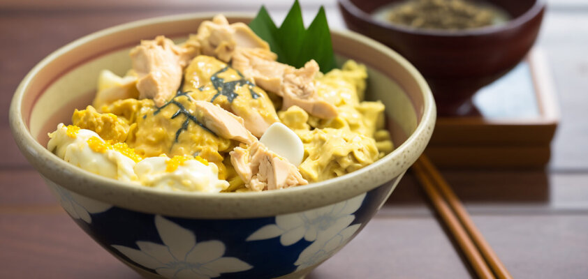 Oyakodon là món cơm với thịt gà hấp chín cùng trứng và hành tây trong nước sốt ngọt và đậm đà.