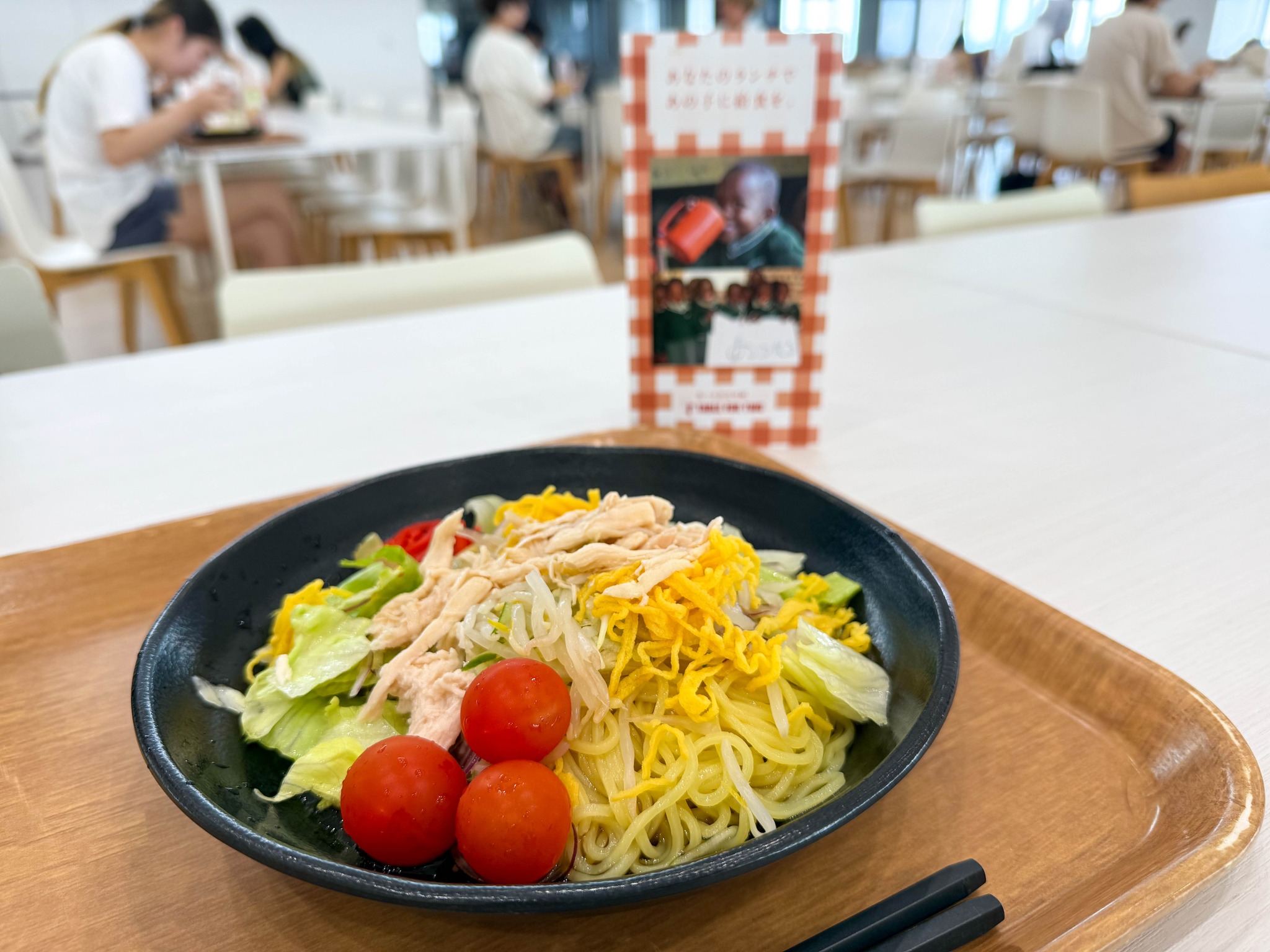 Trong đợt hoạt động này, Seminar Nagai đã giới thiệu món mì lạnh kiểu Trung Quốc sử dụng cà chua mini từ đảo Oshima – đang vào mùa cao điểm. Món ăn được phục vụ theo mô hình TFT – Table For Two: với mỗi phần ăn bán ra, 20 yên được quyên góp để hỗ trợ bữa ăn cho trẻ em tại các nước đang phát triển.