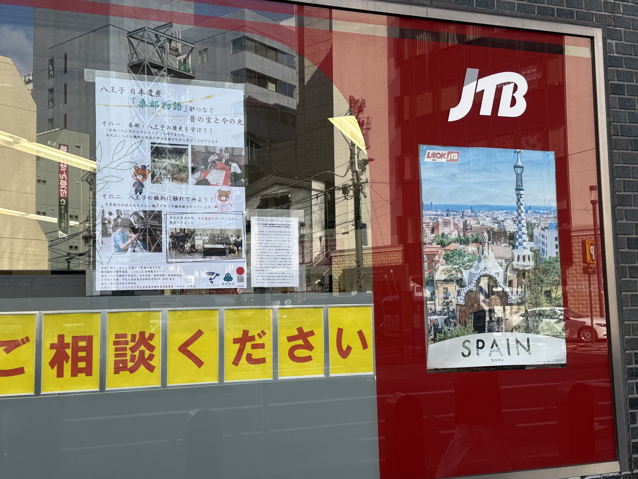 Vào thứ Sáu, ngày 30 tháng 10 năm 2025, các áp phích giới thiệu dự án phát triển du lịch dựa trên Di sản Nhật Bản “Soto Monogatari” (Câu chuyện thành phố Dâu tằm) do sinh viên thực hiện đã chính thức được trưng bày tại cửa sổ văn phòng JTB chi nhánh Bắc Hachioji, ngay trước ga JR Hachioji.