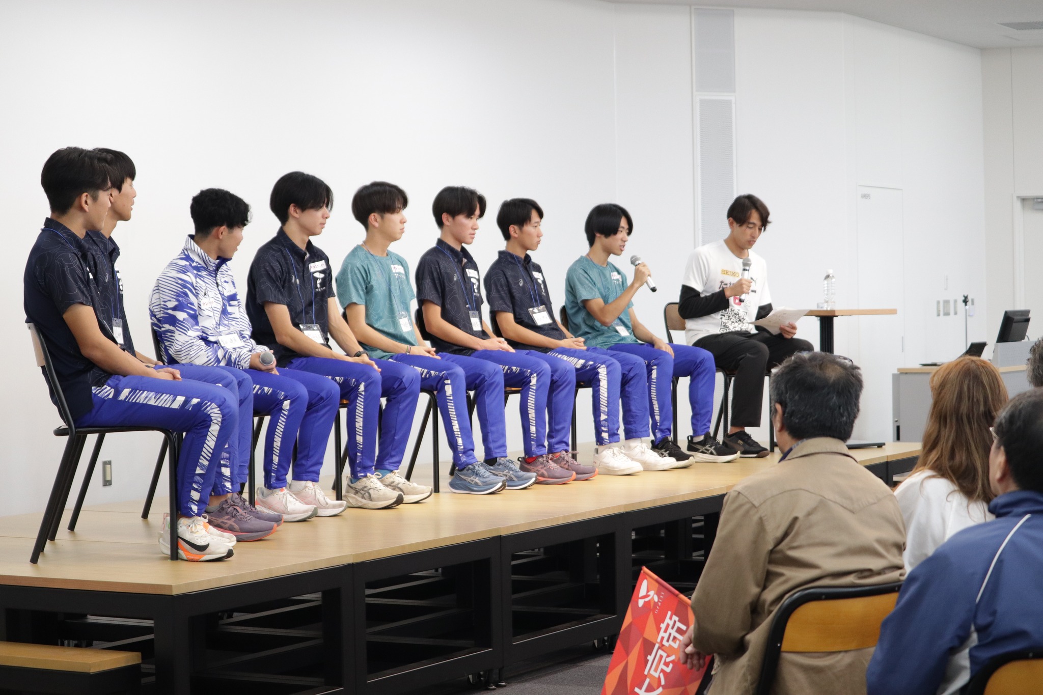 Trên sân khấu, huấn luyện viên trưởng Nakano Takayuki cùng 11 vận động viên đang thi đấu của đội đã tham gia đối thoại. Buổi trò chuyện xoay quanh nhiều chủ đề: